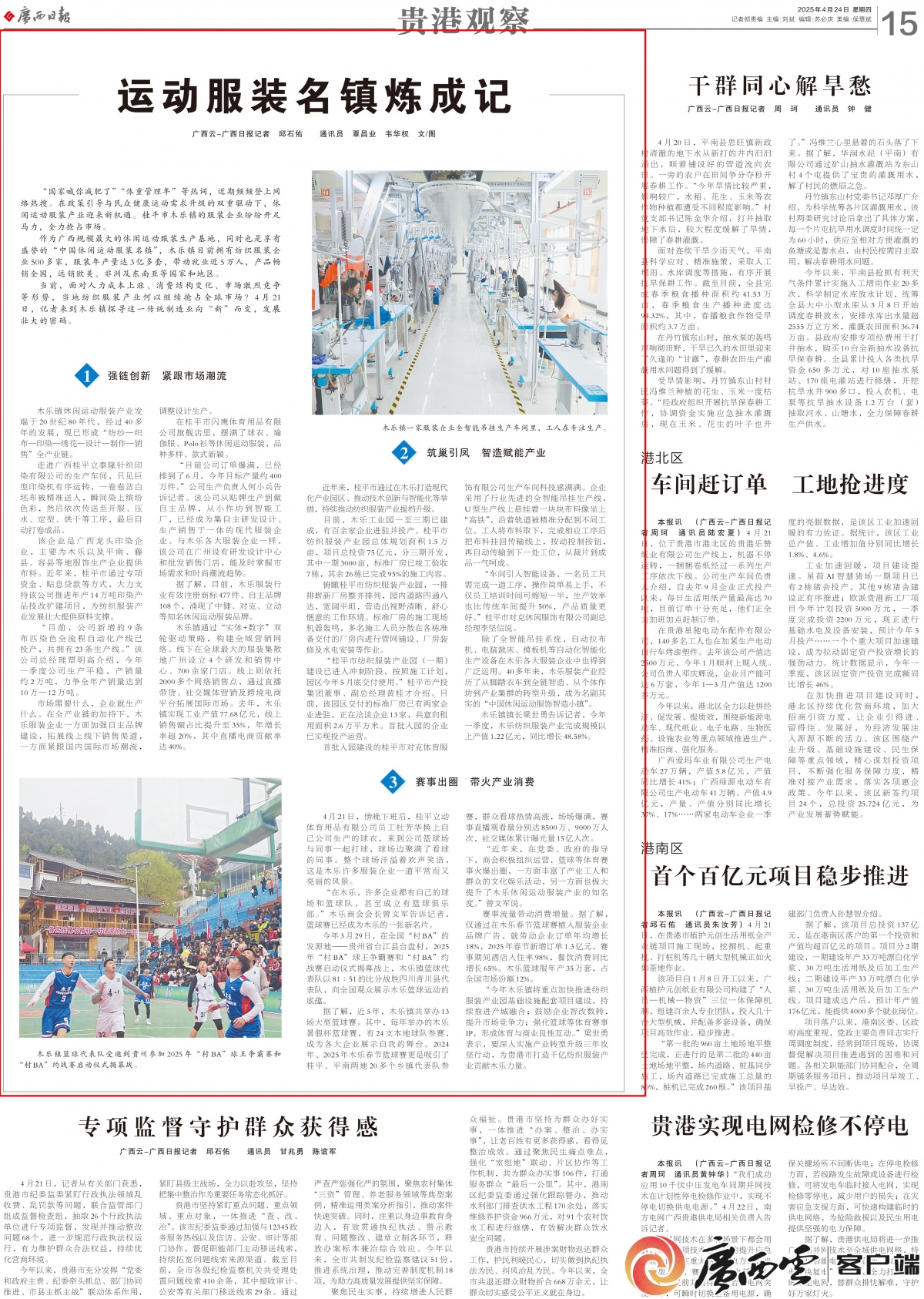 凯发k8com:广西日报贵港头条 年产服装3亿多套!运动服装名镇炼成记