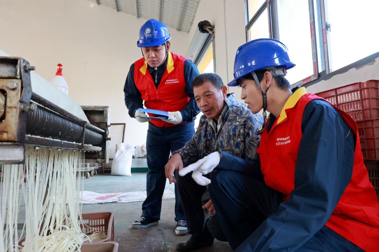 11月5日,国网鄂州供电公司楚天星火党员服务队员走进坐落华容区临江乡大湖村的包有文豆丝加工坊,主动化设备轰鸣工作,磨好的米浆顺着管道主动流入烫皮机,温度显示屏上数字安稳跳动,包有文站在操作台旁,只需轻轻按下按钮,磨浆、烫皮、切丝等工序便有序推动。